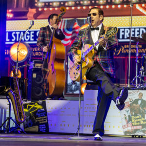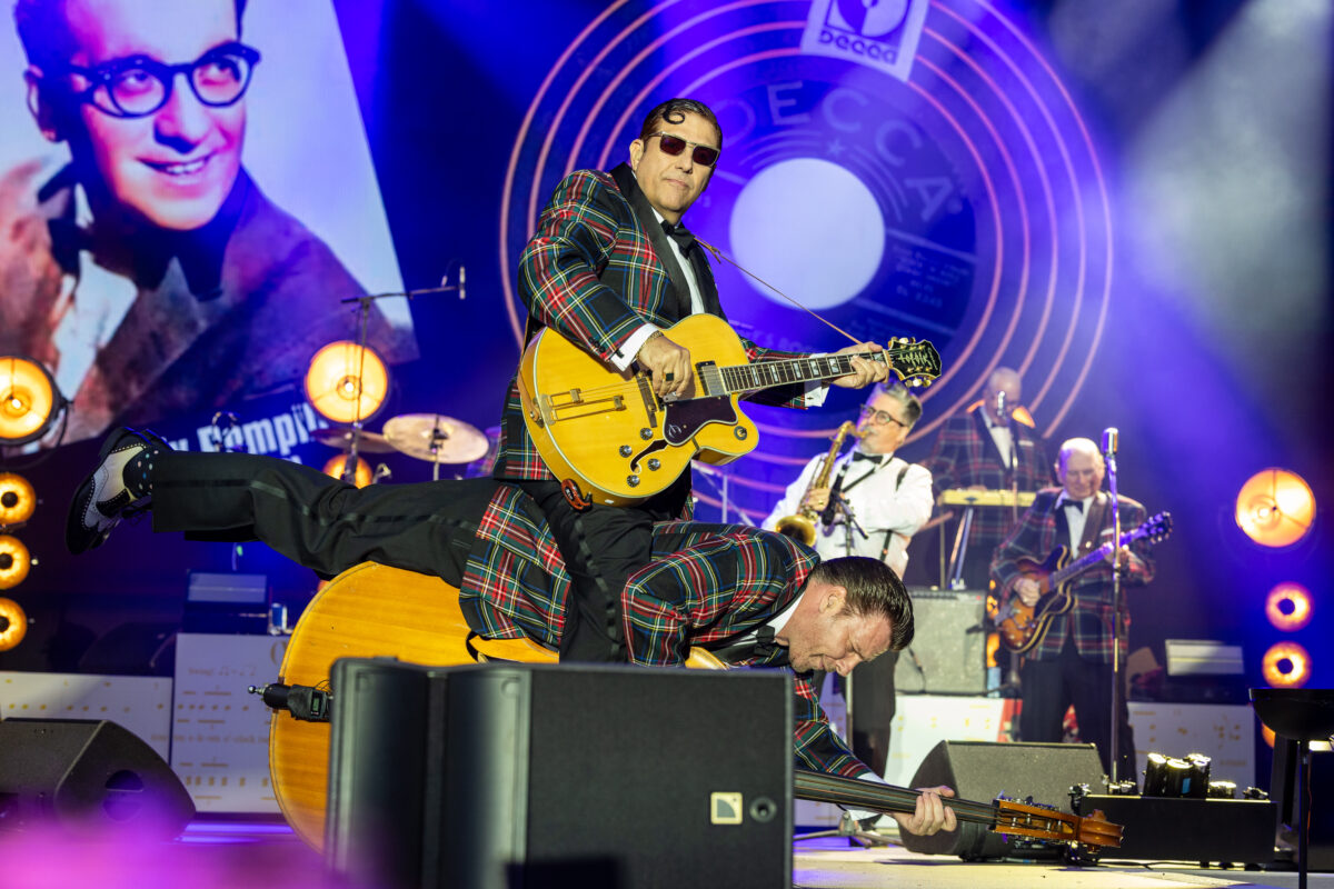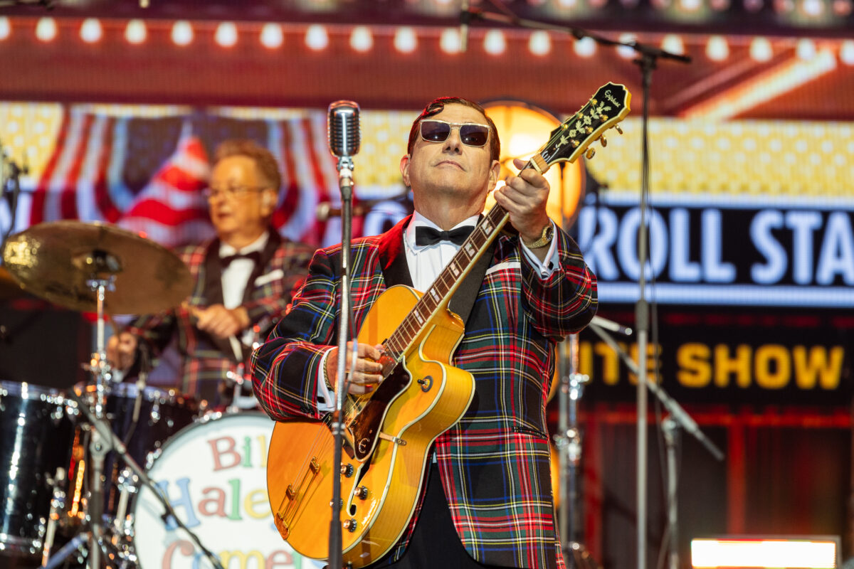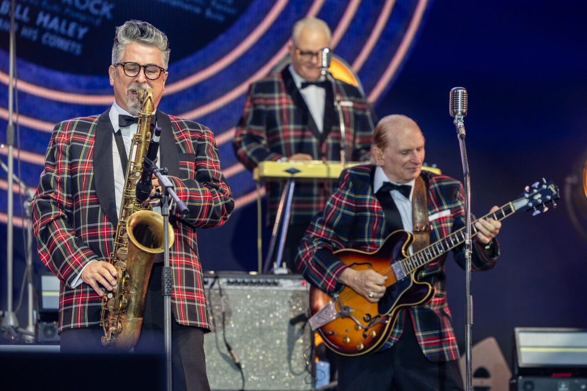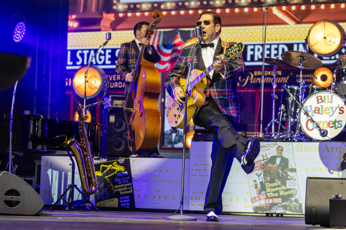 Performing half a century in Bill Haley’s name means thousands of gigs all over the world, all-time most popular rock songs, double basses flying through the air, drums walking across the stage, saxophones leaping over tables and guitar strings ringing to a rhythm that hasn’t lost its thrill for 70 years. Music that even today makes fans jump off their chairs and girls faint by dozens. – This is the true spirit of classic rock ’n’ roll…!